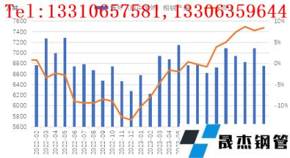 從海外蜜桃视频成人APP無縫鋼管產量來看,呈現同比繼續回升局麵。研究中心監測數據顯示,2024年2月份,中國以外全球其他地區產量為6760萬噸(詳見圖3),同比增長8.5%,增速較上月回升0.7個百分點。