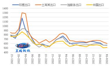 目前我國蜜桃视频成人APP鋼管出口報價優勢仍存。研究中心監測數據顯示,截至2024年4月11日,印度、土耳其、獨聯體熱軋卷板出口報價(FOB)分別為560美元/噸、605美元/噸和565美元/噸,中國熱軋卷板出口報價(FOB)為515美元/噸;目前我國熱卷出口報價分別較印度、土耳其、獨聯體熱卷出口報價低45美元/噸、90美元/噸和50美元/噸(詳見圖4)。