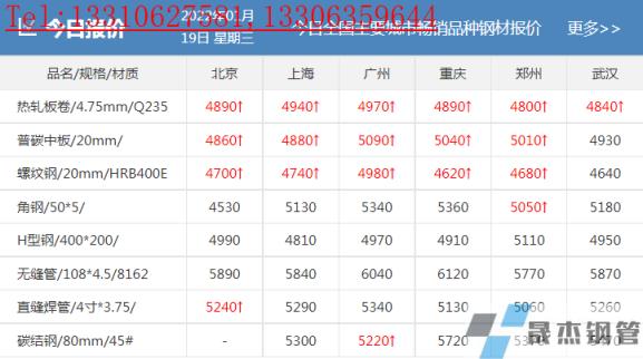 19日各地市場穩中個別上調:上海市場螺紋4650-4690,西城抗震4700,其他4570-4620,興鑫抗震4630,聯鑫黃海抗震4640,盤螺4750-4980,高線亞新4650;北京市場,河鋼小螺紋4740-4760,大螺紋4630-4650,盤螺4810;杭州市場螺沙4730中4730西城4720浙江華宏4620江蘇镔鑫4620長達抗震4720線材中天4930亞新4680聯鑫黃海盤螺4800;福州市場現線三鋼4970三寶4950,螺三鋼4760三寶4740大東海4740吳鐵4730,盤三鋼5040三寶5020。濟南市場,萊鋼螺紋4810,永鋒、石橫螺紋4800,永鋒、石橫盤螺5080。重慶市場商家陸續離市,現達鋼螺4800、盤4920,永航螺4780、盤4870,瀘鋼螺4780、盤4870。(單位:元/噸)