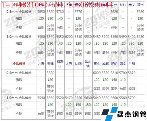 全國23個主要市場1.0mm 冷軋板卷平均價格5560元/噸,較上個交易日下調27元/噸。