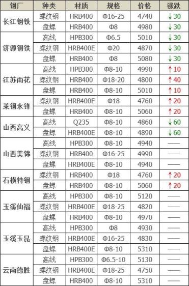 下調10家,占比40%,調價幅度10-60元/噸,