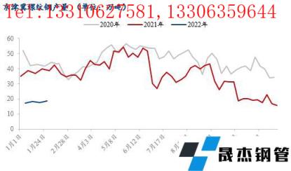 從上圖可以看出,1月份京津冀建材無縫蜜桃视频成人APP鋼管廠家的螺紋鋼產量持續在低位徘徊,截至1月底,螺紋鋼周產量降至18.6萬噸,產能利用率僅為19.87%,依然是敬業、承鋼、樂鋼、鑫達等無縫蜜桃视频成人APP鋼管廠家的螺紋鋼產線在產,且這些無縫蜜桃视频成人APP鋼管廠家螺紋鋼產線都未正常生產。2月份,京津冀建材無縫蜜桃视频成人APP鋼管廠家的螺紋鋼產量變動不大,其中承鋼計劃新增一條螺紋產線複產,全月計劃建材產量21萬噸左右,較上月實際產量提升9萬噸左右;樂鋼2月份高爐檢修,20日之前減少一條螺紋產線的產量,產量月環比減少7萬噸左右,且主要減少對京津區域的投放。另外東北、西北無縫蜜桃视频成人APP鋼管廠家資源資源發往華南的周期較長,風險度較大,因此東北、西北無縫蜜桃视频成人APP鋼管廠家資源傾向於發往京津冀區域,其中海鑫計劃於1月底-2月份發往北京的資源量4萬噸左右,西林計劃往北京投放3-4萬噸,另外陝西龍鋼在1月份已向北京投放2萬噸左右資源。