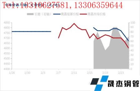 冬儲期間,也就是2月上旬與中旬FDTG建材南昌市場采取保價政策,即1月26日至2月5日無縫蜜桃视频成人APP鋼管廠家定價為2月16日至2月25日這旬日定價均值,2月6日至2月15日無縫蜜桃视频成人APP鋼管廠家定價為2月26日至3月7日期間日定價均值,當前2月上旬與下旬的無縫蜜桃视频成人APP鋼管廠家定價已出,中旬定價還未出。南昌市場FDTG螺紋鋼成交價與無縫蜜桃视频成人APP鋼管廠家每日定價差值,如下表所示。
