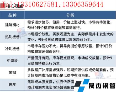 中厚板:3月8日,全國24個主要城市20mm普板均價5299元/噸,較上個交易日下跌4元/噸。從供應端來看,北方供應雖有所恢複,但是仍然執行采暖季限產政策,產量回升或在二季度有所體現。庫存方麵,庫存拐點已經出現,連續兩周庫存出現了降庫趨勢,對價格也起到了一定的支撐。從流通環節來看,下遊陸續複蘇,采購積極性也隨著近期價格的上漲而趨強,成交放量。從基本麵來看近期對價格仍有支撐,預計9日全國中厚板價格持穩運行為主。