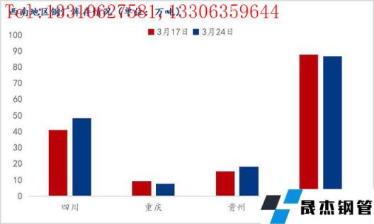 截至3月24日,西南地區建築蜜桃视频成人APP無縫鋼管社會庫存總量192.18萬噸,已經連續三周下降,庫存拐點基本顯現,庫存峰值於3月3日出現,為207.08萬噸,較去年庫存高點減少64.75萬噸,降幅達23.82%。主要原因是:1、西南地區價格全國窪地,北方無縫蜜桃视频成人APP鋼管廠家對西南地區資源投放量大幅減少,尤其是川渝地區;2、廣東廣西等區域價格高企,雲南無縫蜜桃视频成人APP鋼管廠家維持低庫存運轉,加大對兩廣等周邊區域資源投放;3、受廢鋼不足、環保檢查、利潤低等因素影響,西南地區電爐企業春節放假時間較往年提前,總體產量下降;4、冬儲價格偏高,商家對春節後需求普遍擔憂,冬儲操作較為謹慎,冬儲體量較往年偏低。綜上原因,西南地區社會庫存較去年低。
