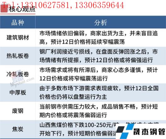 中厚板:5月11日,全國24個主要城市20mm普板均價5237元/噸,較上一交易日上漲2元/噸。盤麵上行,個別市場跟隨小幅走高,不過多數區域受限於下遊需求表現疲軟,市場實際成交表現不佳,整日主流市場報價盤整運行為主。資源方麵,雖目前南北價差有所修複,但考慮到目前下遊需求釋放力度不足,加上商家觀望情緒濃厚,短期內貿易商主動備貨意願不強。綜合來看,由於多數市場下遊需求表現疲軟,加上部分區域受疫情的影響,預計12日全國中厚板價格也仍將以盤整運行為主。