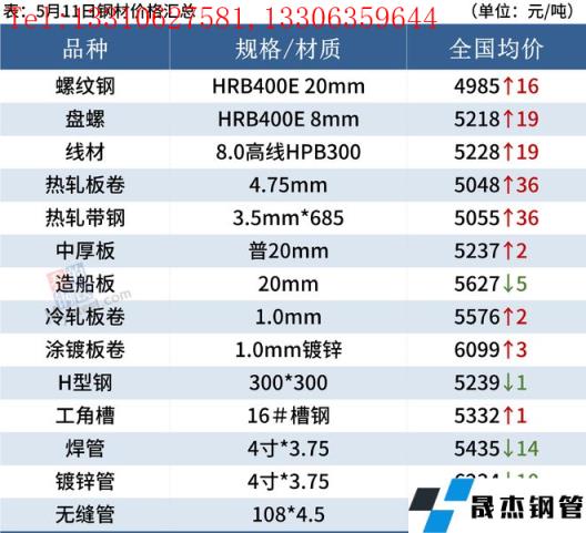 建築蜜桃视频成人APP無縫鋼管:5月11日,全國31個主要城市20mm三級抗震螺紋鋼均價4985元/噸,較上個交易日漲16元/噸。期螺止跌反彈,市場情緒有所好轉。上午國內建築蜜桃视频成人APP無縫鋼管價格止跌企穩。短期來看,市場情緒依舊偏弱,商家出貨為主,並未盲目追高,預計12日國內建築蜜桃视频成人APP無縫鋼管價格或將延續窄幅震蕩。