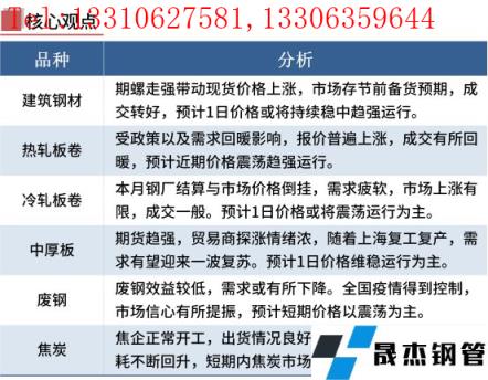 黑色期市偏強運行,貿易商報價上揚。從成交方麵來看,由於期螺漲幅較多,市場剛需有所釋放,部分投機性需求增加。短期來看,近期全國多地一攬子穩經濟政策積極出台,穩定市場情緒,在政策加持下,現貨價格有所反彈。加之,上海6月1日起全麵恢複正常生產生活秩序,預示著需求將逐步回暖。隨著市場信心的逐步建立,短期鋼價呈現震蕩偏強運行。