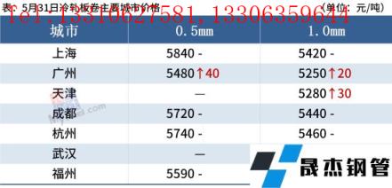 冷軋板卷:5月31日,全國24個主要城市1.0mm冷卷均價5434元/噸,較上個交易日上漲6元/噸。由於本月無縫蜜桃视频成人APP鋼管廠家結算多不理想,與市場價格形成倒掛,再加上需求持續疲軟,現貨市場跟漲動力不足,商家多以穩價出貨回籠資金為主,今日整體成交表現一般。據悉,上海6月1日倉庫取消通行證提貨要求,倉庫有望恢複正常加工提貨,由於臨近解封,上海市場觀望情緒較為濃厚,悲觀情緒有所改善。預計1日國內冷軋板卷價格或將震蕩運行為主。